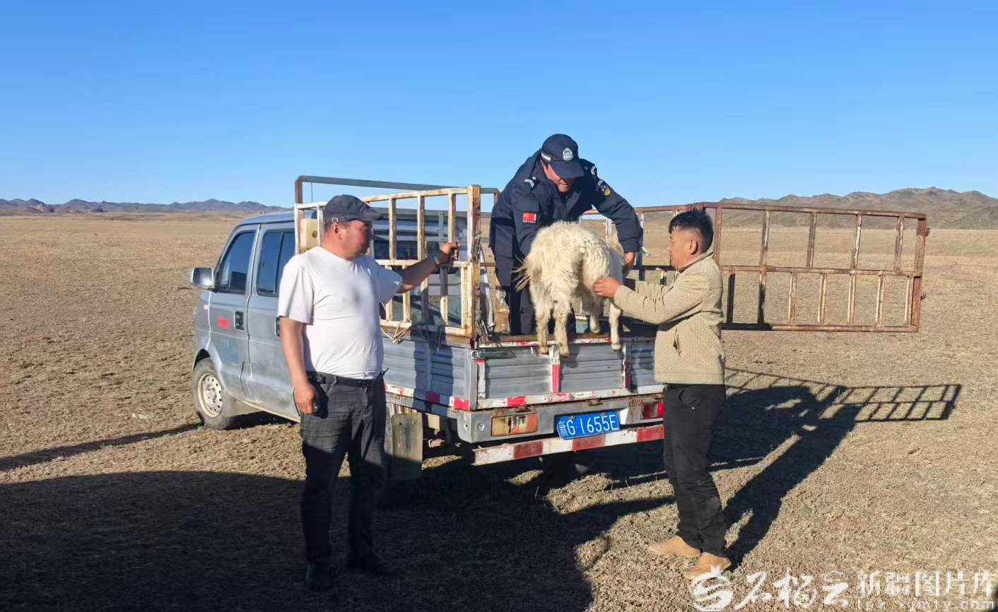 10月1日,托里县公安局民警辅警帮助牧民找回丢失的羊。叶尔波拉提·赛力克摄
