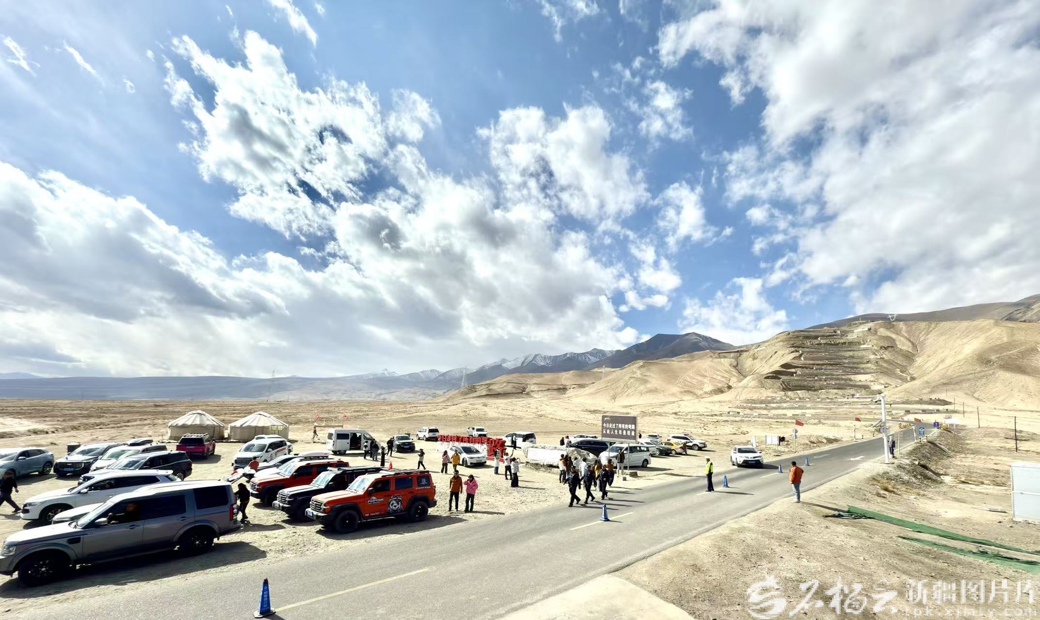 10月1日,来自全国各地的游客在帕米尔高原上的盘龙古道游玩。闫志奇摄