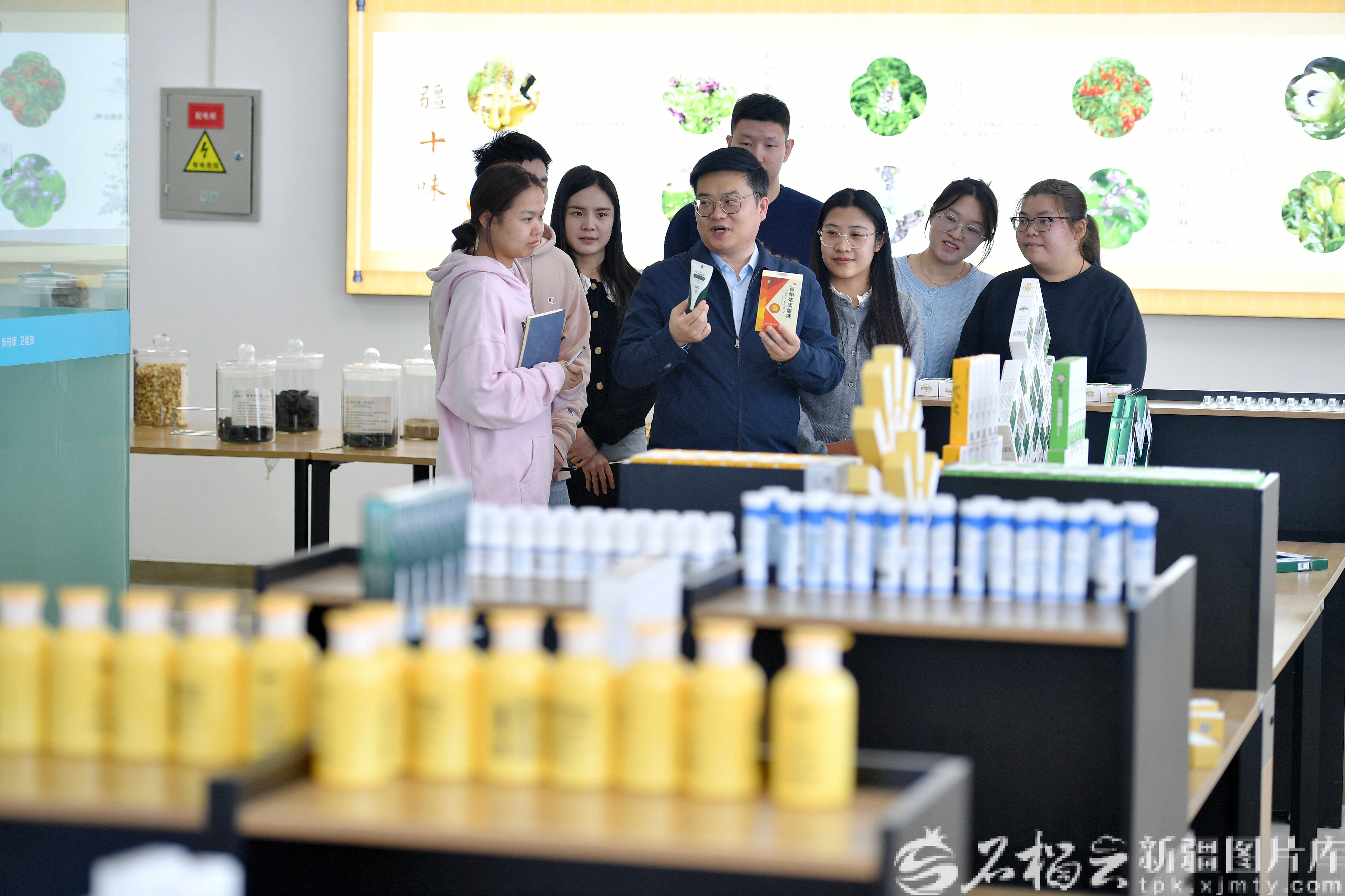 1月21日,李柯翱在给研发人员讲述新疆中药民族药产业的发展历程。