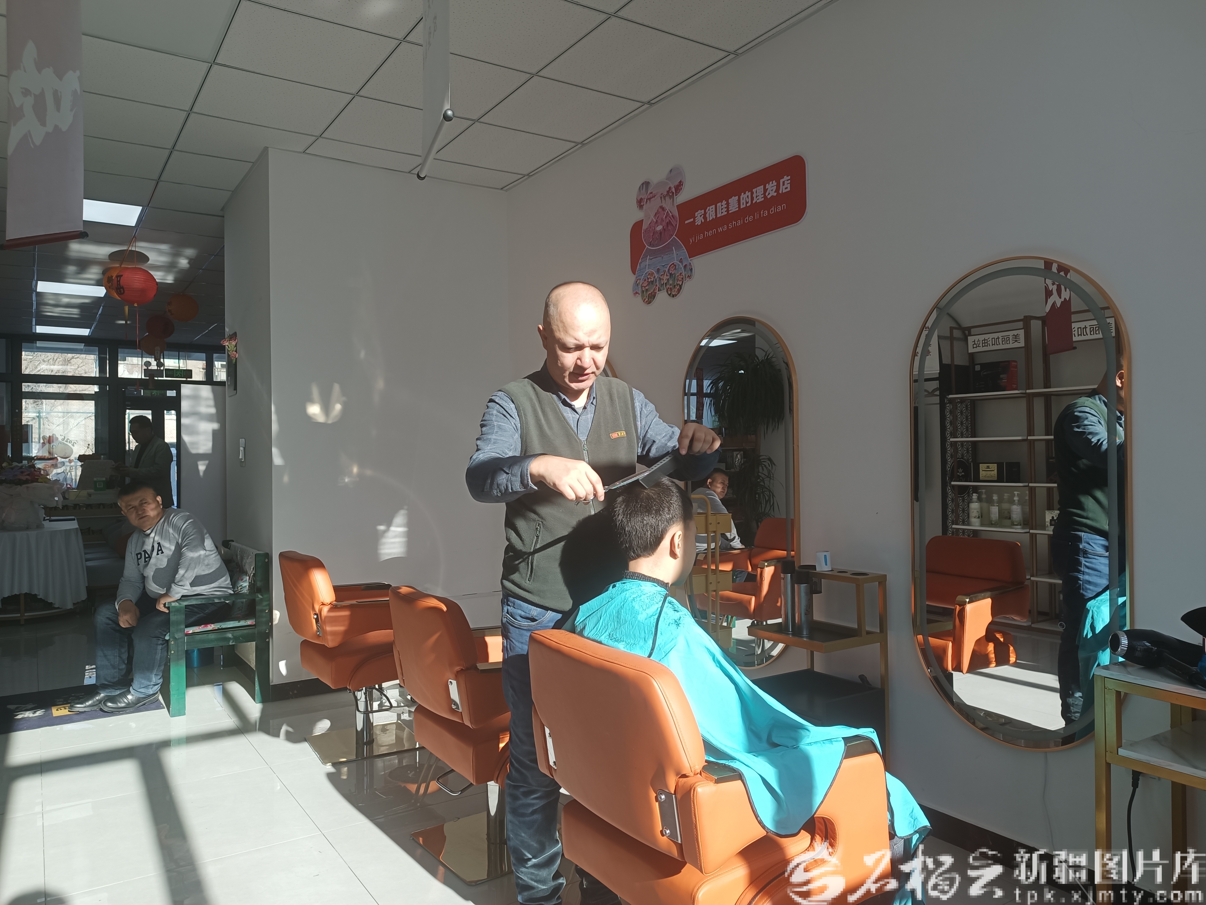 2月9日,乌鲁木齐市天山区赛马场街道赛马场西社区邻里中心,志愿者在给辖区居民理发。天山网-新疆日报记者 张冬梅摄