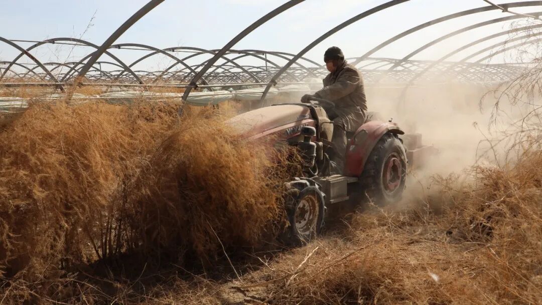村民正在清除芦笋秸秆。喀什地区融媒体中心 实习记者尉旭升 摄