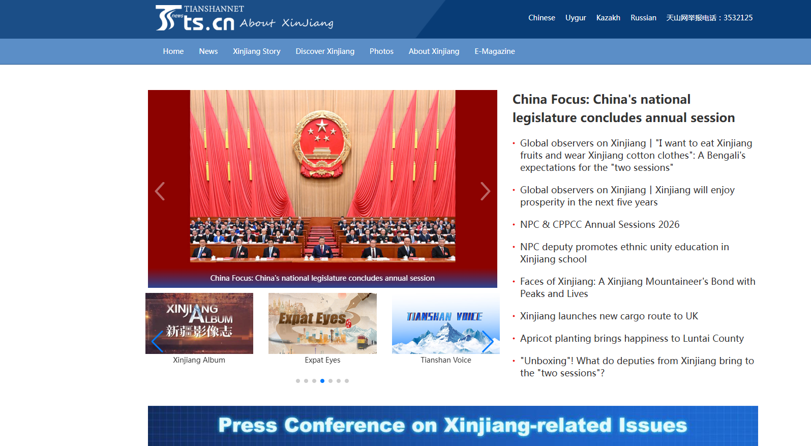 新疆日报社(集团)2026全国两会报道,拓宽国际传播视野,采用国际化的表达方式,突出亮点、塑造特色,生动讲好中国新疆故事。